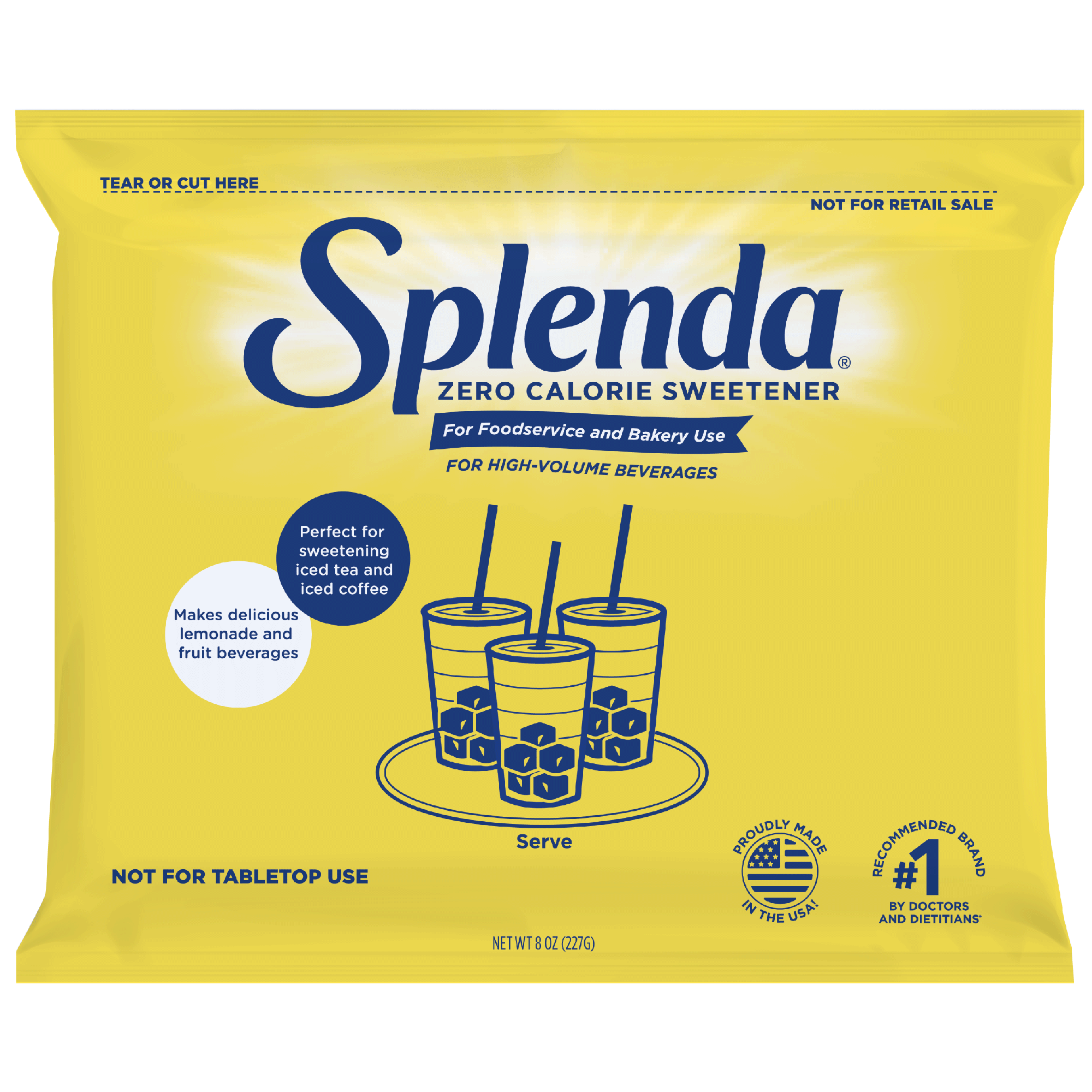 Our Splenda Granulated Sweetener for High Volume Beverages tastes like sugar, and has zero calories. It’s the perfect zero calorie sugar alternative for sweetening all your beverages. The Splenda brand is the number one requested sweetener brand at restaurants and coffee shops. It’s America’s favorite sweetener brand. Proudly made in the USA.