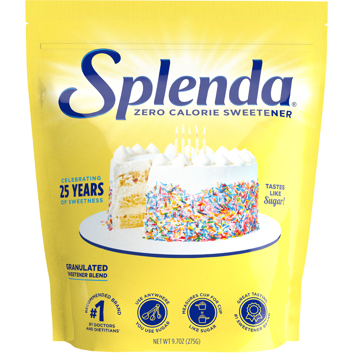 America’s favorite zero calorie sweetener! Splenda Original Sweeteners taste like sugar and are perfect for sweetening coffee, tea, and other beverages. Splenda Original also includes zero calorie granulated, great for baking! Plus baking blends including Splenda Sugar Blend and Splenda Brown Sugar Blend to help cut calories. Proudly made in the USA.